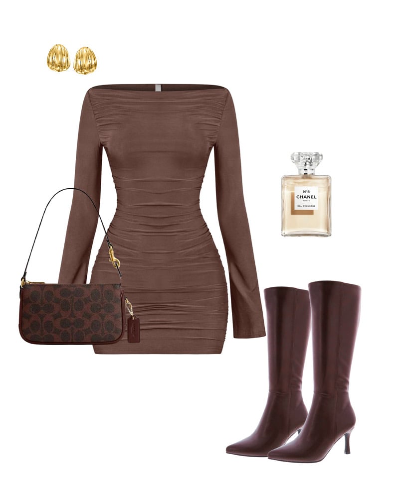 brown long sleeve dress